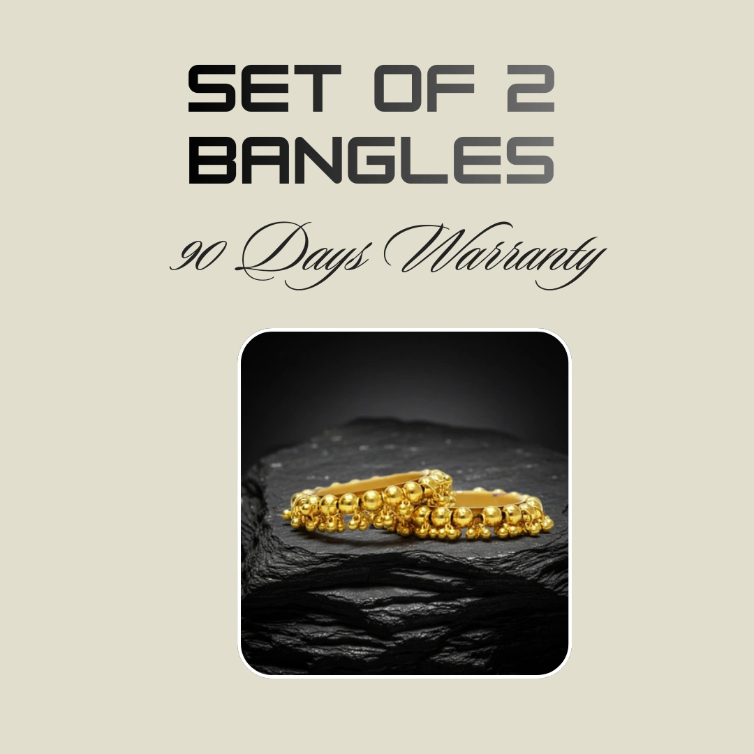 Celebrate timeless tradition with this exquisite set of gold-toned bangles, adorned with cascading layers of miniature ghungroos (beads) that shimmer and sway with every motion. The intricately layered beadwork adds volume and character, offering a festive musical charm that pairs beautifully with both bridal wear and cultural ensembles. The full-circle design creates an enchanting auditory and visual rhythm — ideal for brides, dancers, and anyone wanting their accessories to speak volumes.