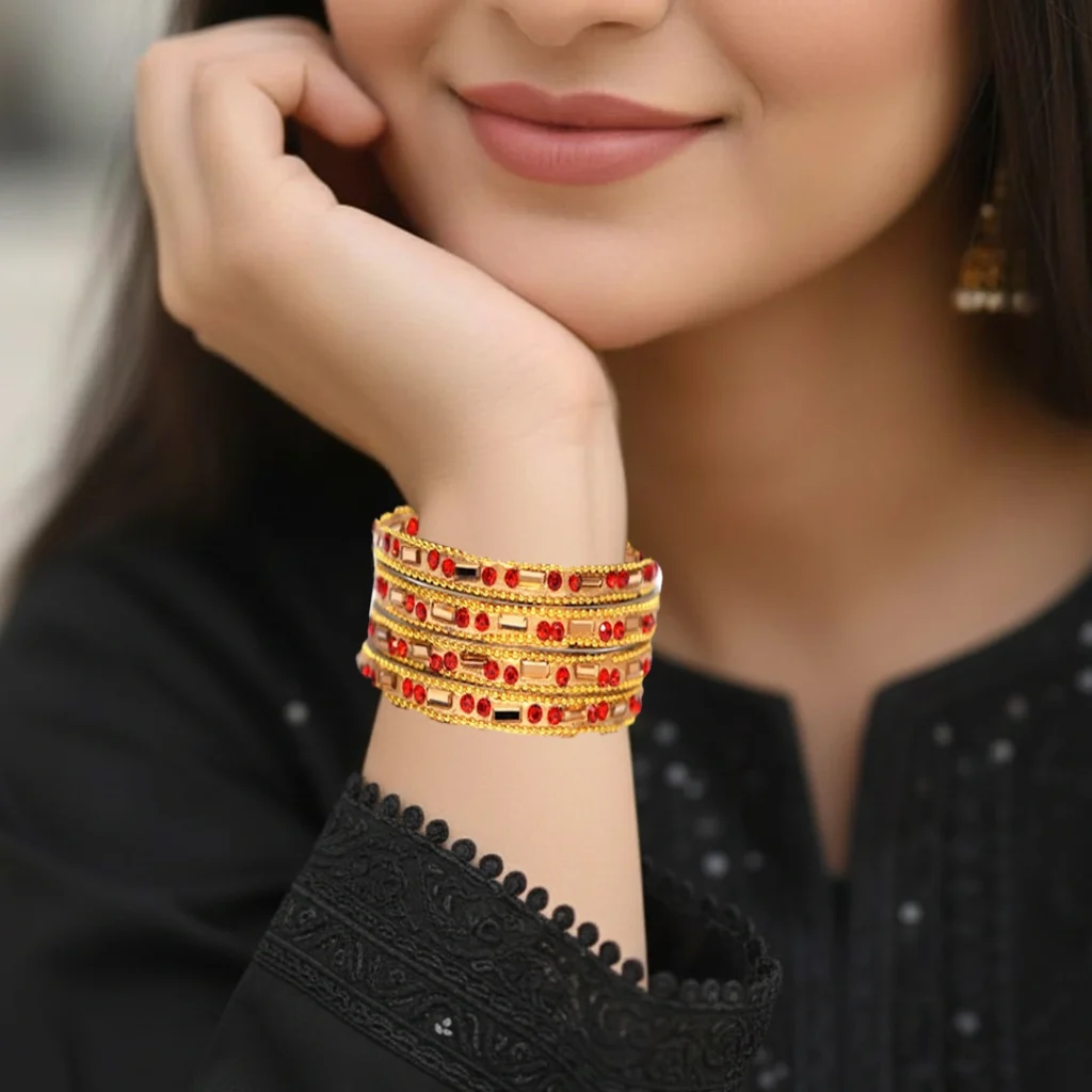 Gold & Ruby-Red Bangle Set